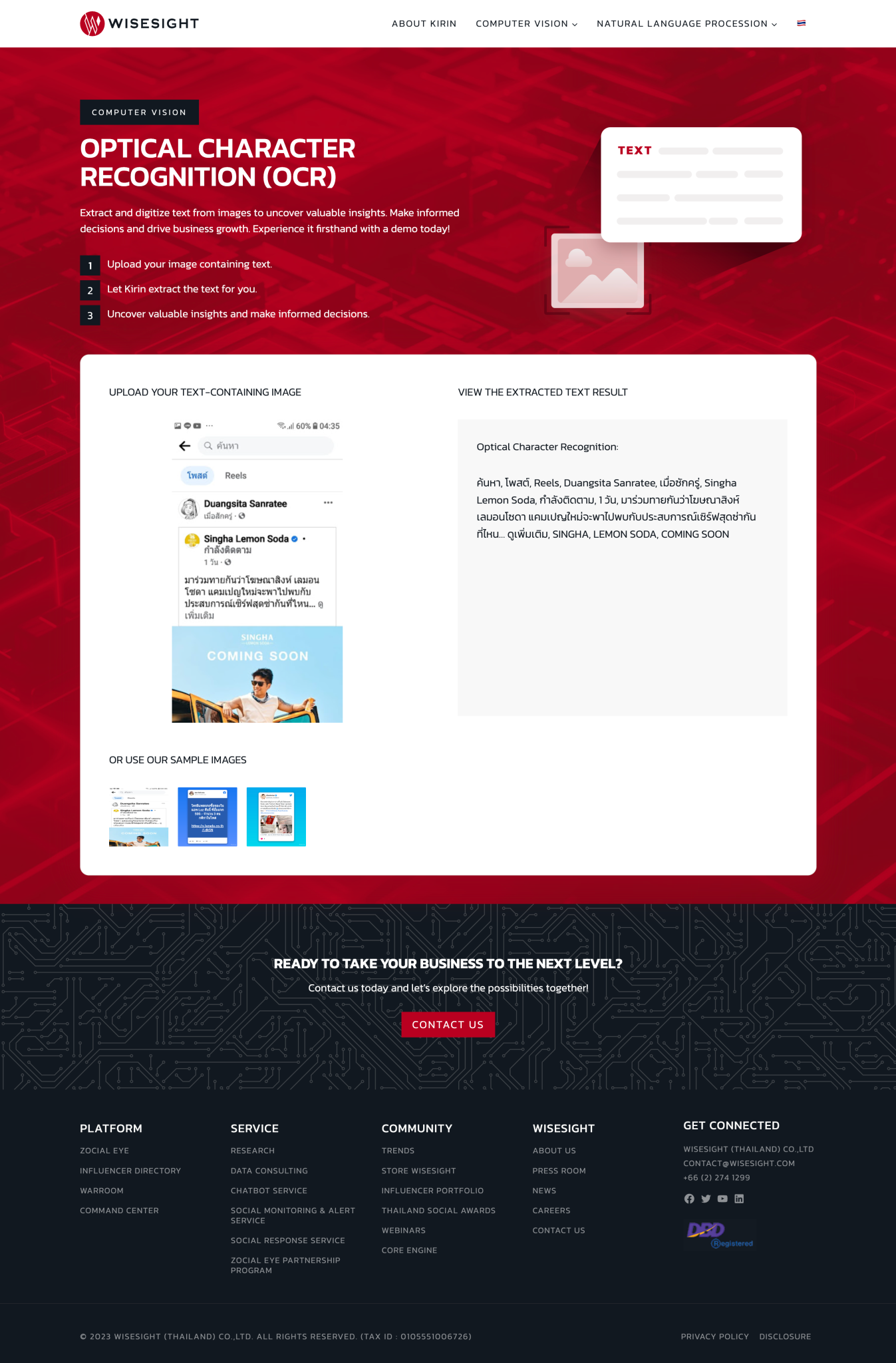 Kirin is an advanced AI engine developed by Wisesight, the social media analytics service in Thailand. Kirin offer API for tasks like analyze images, recognize text, understand sentiment, and more.